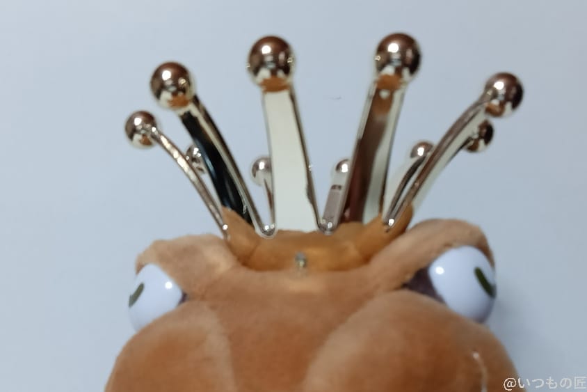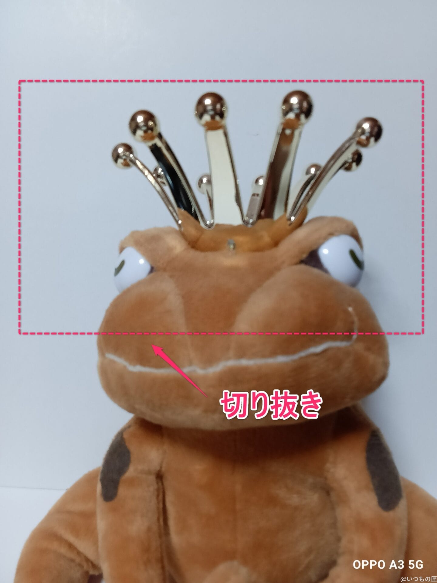 以下は、室内でインカメラ撮影したぬいぐるみの写真です。王冠と背景の境目の処理が甘く、ぼやけています