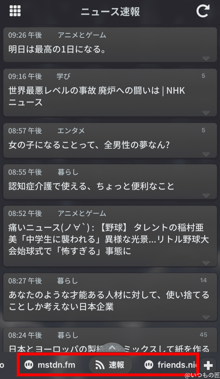 このアプリも Twitter と マストドン を併用できることに加え、RSSなどのニュースフィードもタイムラインのようみ閲覧できるのが大きな特徴です。
