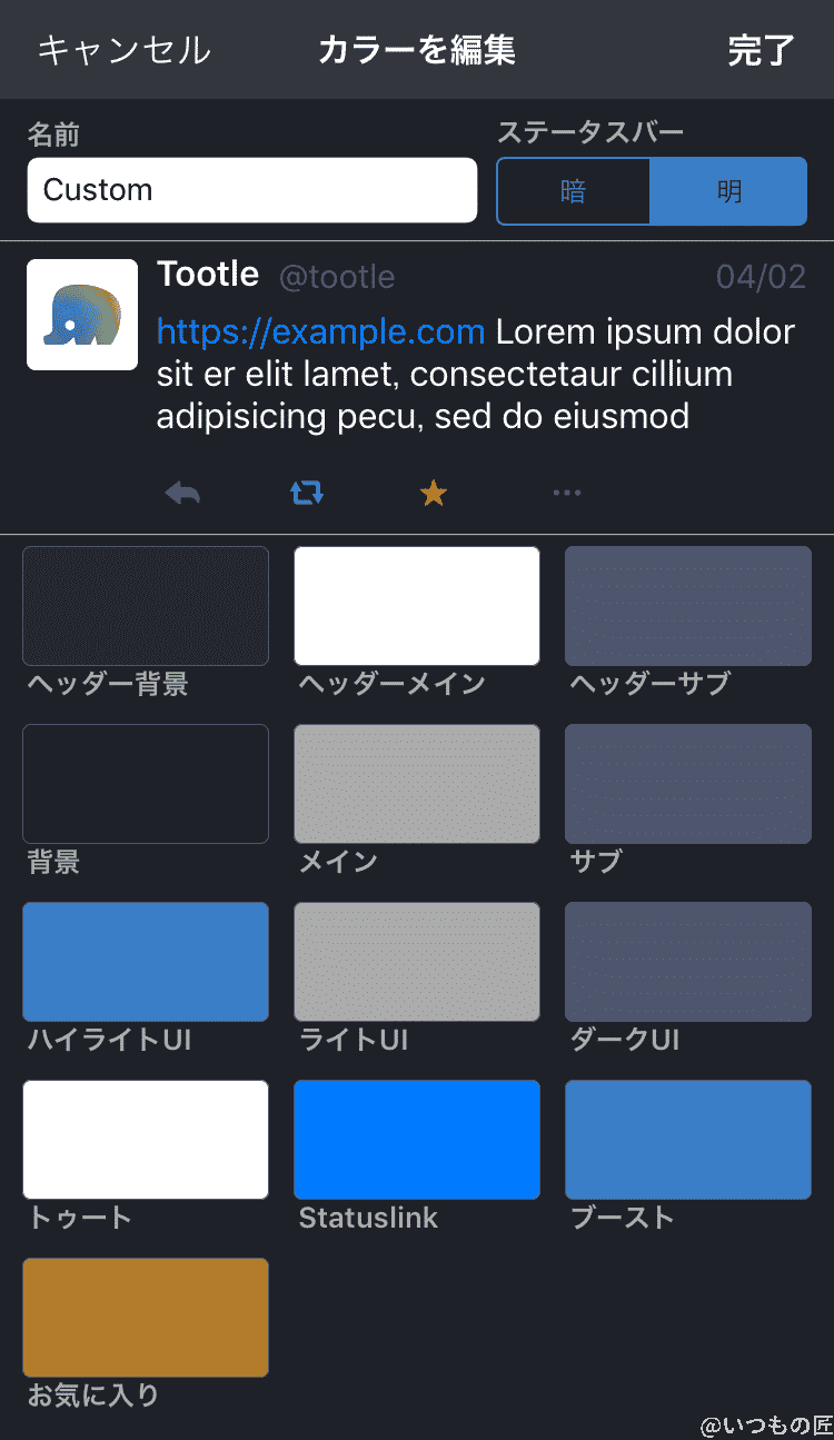 また、このアプリはデザイン(主にカラー部分)のカスタマイズが非常に柔軟にできます。